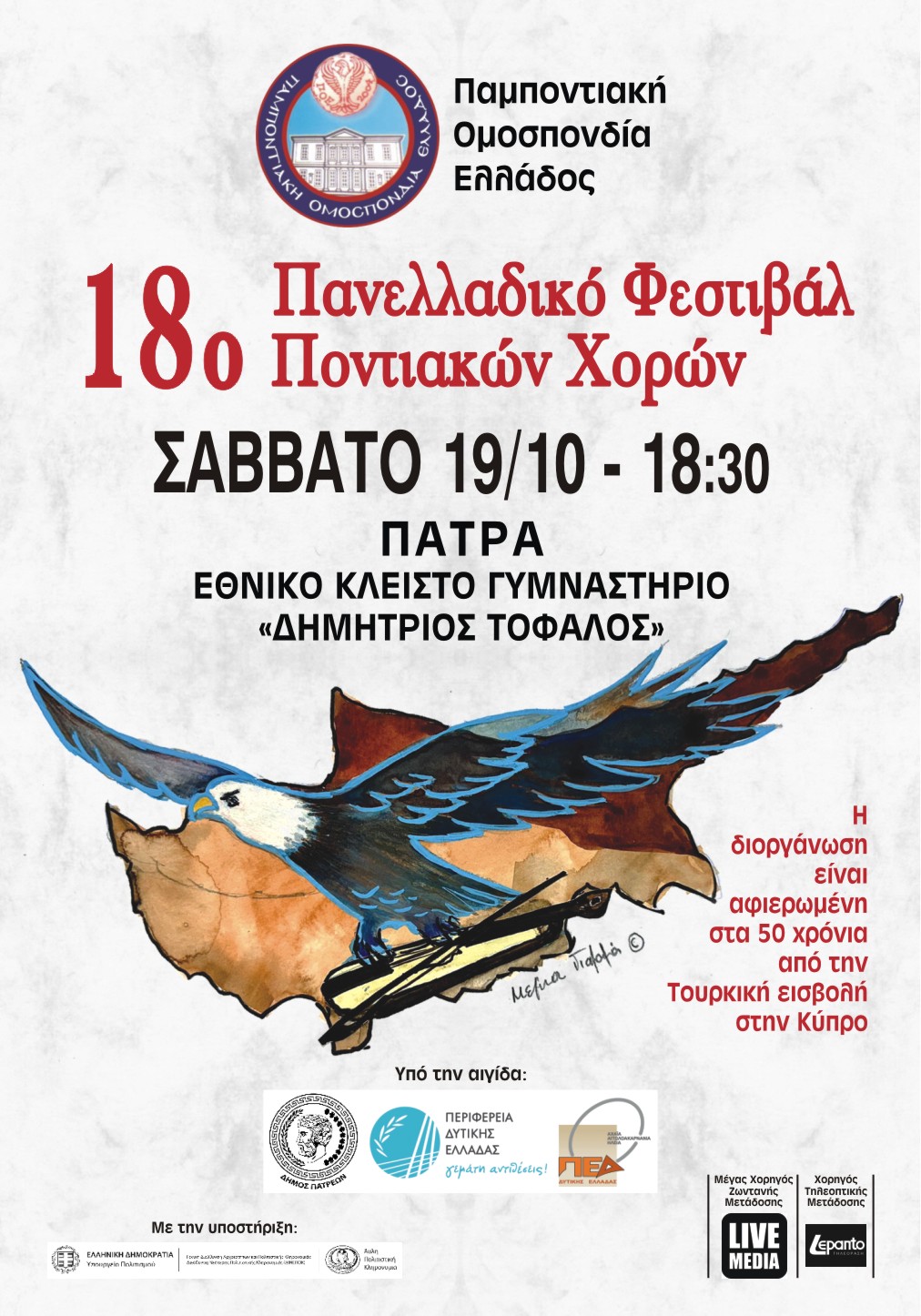 Το 18ο Φεστιβάλ Ποντιακών Χορών της ΠΟΕ ήταν αφιερωμένο στα πενήντα χρόνια από την τουρκική εισβολή στην Κύπρο.