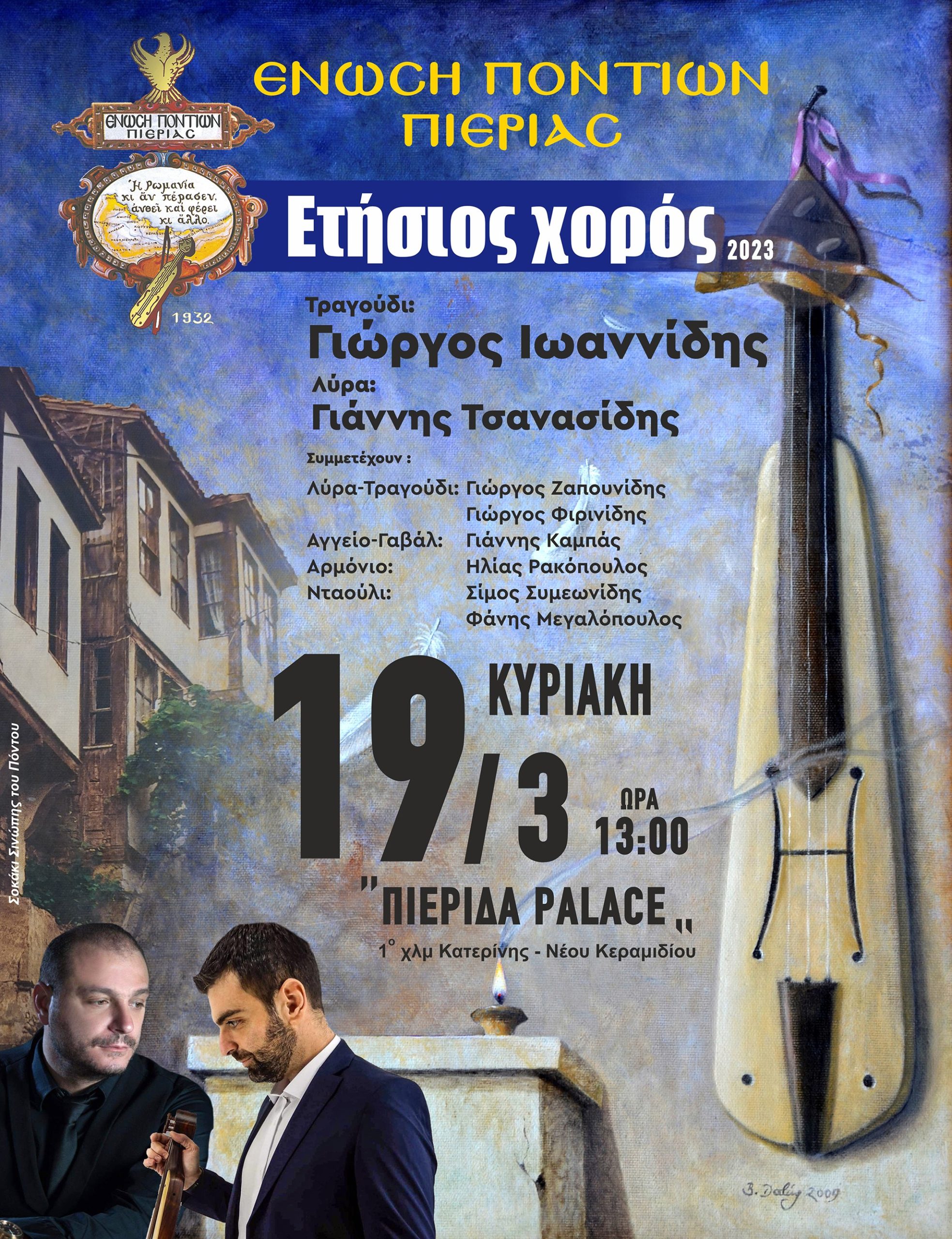 Το παραδοσιακό γεμάτο κέφι γλέντι κορυφώθηκε με τον μοναδικό ερμηνευτή του ποντιακού τραγουδιού Γιώργο Ιωαννίδη και την λύρα του Γιάννη Τσανασίδη, ενώ ο αρχέγονος ήχος του Αγγείου και του Γαβάλ πλημύρισε τον χώρο με τον Γιάννη Καμπά και με το νταούλι του Σίμου Συμεωνίδη.