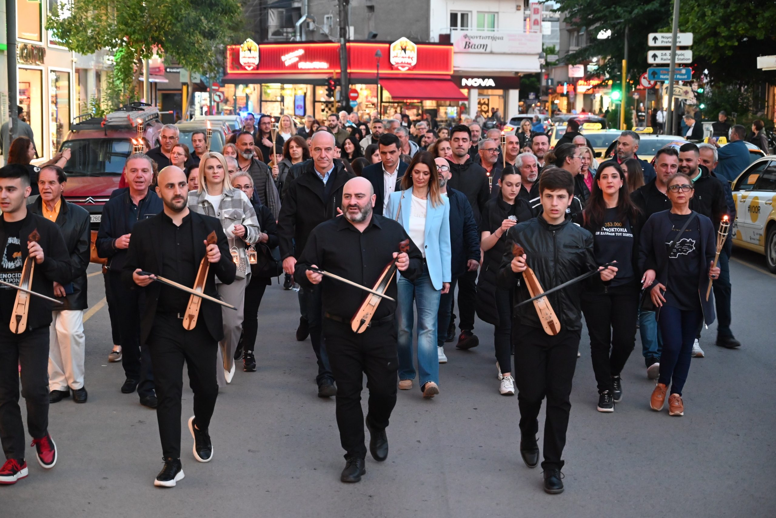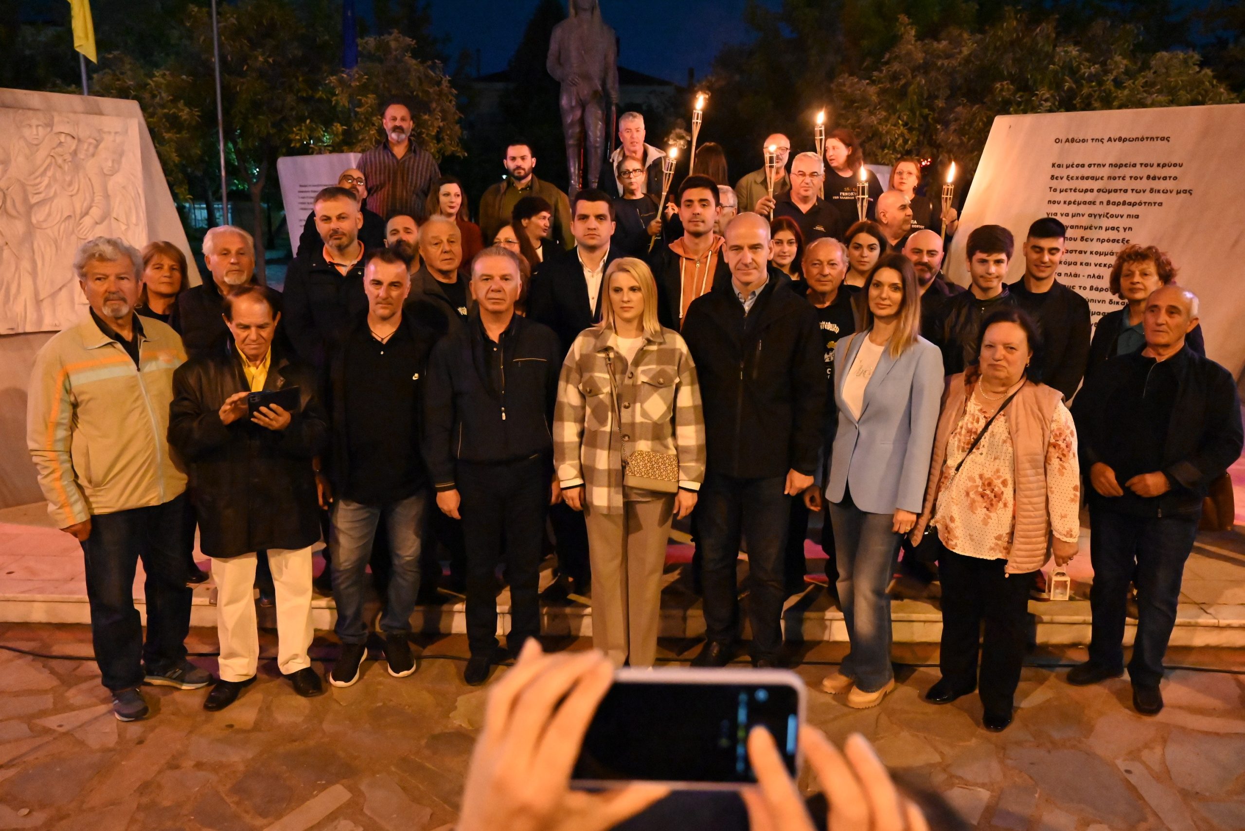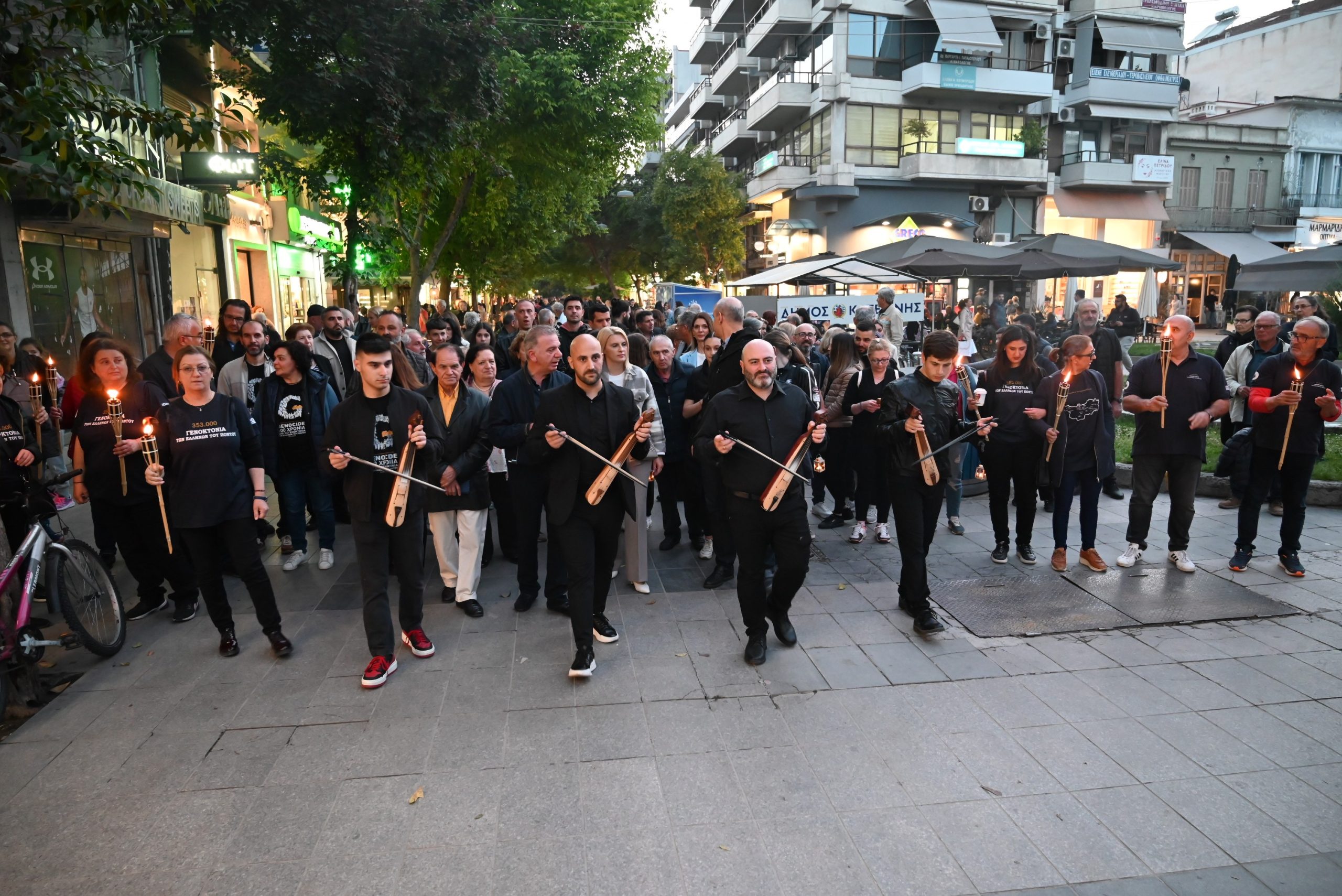Μέσα σε κλίμα συγκίνησης και με ένα κερί στο χέρι έγινε πορεία από την πλατεία Ελευθερίας της Κατερίνης στην Πλατεία Γενοκτονίας επί της οδού 19ης Μαΐου, όπου έγινε και η εναπόθεση της «ΦΛΟΓΑΣ ΤΗΣ ΜΝΗΜΗΣ» στο μνημείο Γενοκτονίας.