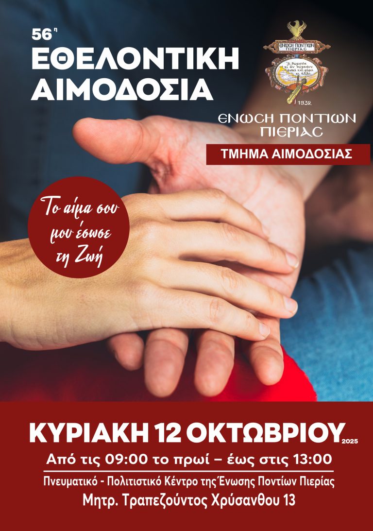 𝚨𝚬𝚴𝚨𝚮 𝚷𝚮𝚪𝚮 𝚨𝚴𝚯𝚸𝛀𝚷𝚰𝚨𝚺: 𝚮 𝟓𝟔𝛈 𝚨𝚰𝚳𝚶𝚫𝚶𝚺𝚰𝚨 𝚬𝚴𝚰𝚺𝚾𝚼𝚺𝚬 𝚳𝚬 𝚯𝚬𝚸𝚳𝚶𝚻𝚮𝚻𝚨 𝚻𝚮𝚴 𝚱𝚶𝚰𝚴𝛀𝚴𝚰𝚱𝚮 𝚷𝚸𝚶𝚺𝚽𝚶𝚸𝚨 𝚻𝚮𝚺 𝚬𝚴𝛀𝚺𝚮𝚺 𝚷𝚶𝚴𝚻𝚰𝛀𝚴 𝚷𝚰𝚬𝚸𝚰𝚨𝚺 Η 56η Εθελοντική Αιμοδοσία της Ένωσης Ποντίων Πιερίας πραγματοποιήθηκε με επιτυχία την Διαβάστε περισσότερα 12 Οκτωβρίου, 2025