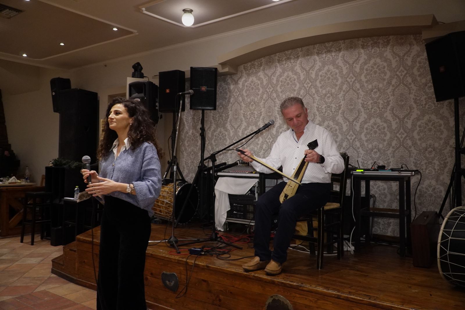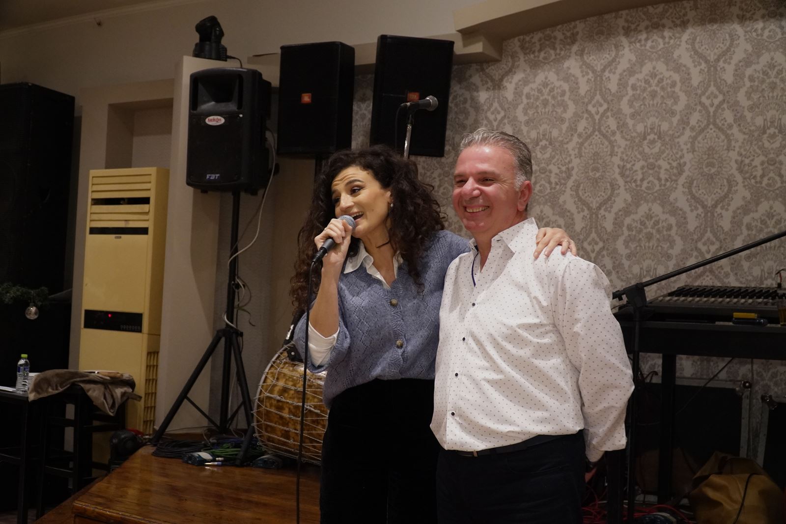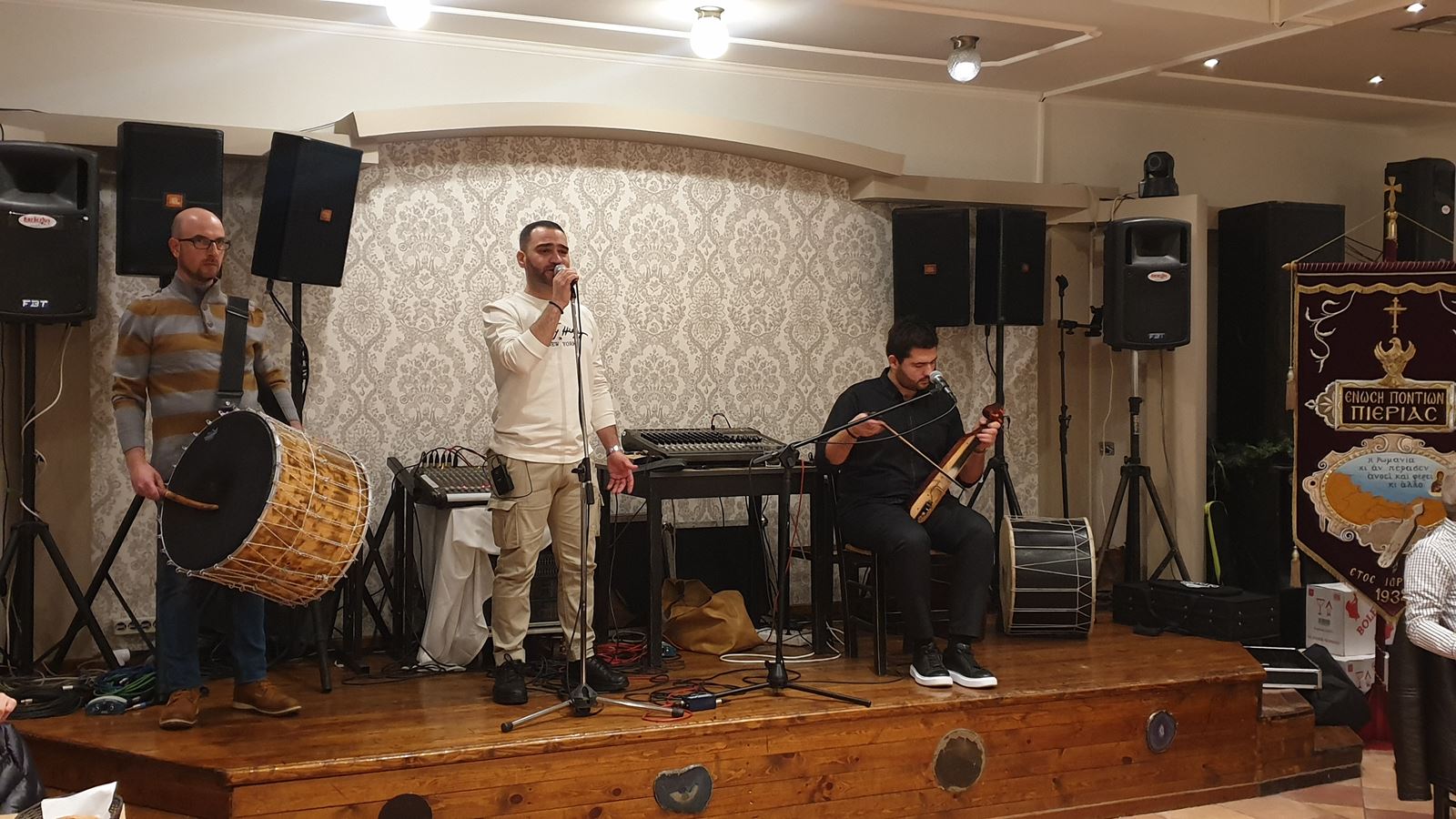 Ξεχωριστή ήταν η παρουσία της μοναδικής ερμηνεύτριας του ποντιακού παραδοσιακού τραγουδιού, Αντωνίας Καραγιαννίδου, που με την εξαιρετική της ερμηνεία, μάγεψε τους παρευρισκόμενους ενώ στη λύρα την συνόδεψε ο Πρόεδρος του συλλόγου ο Κώστας Παπουτσίδης ο οποίος στον σύντομο χαιρετισμό του τόνισε το σημαντικό πολυσχιδές έργο που επιτελείται μέσα από τα τμήματα του συλλόγου και τους ευχαρίστησε για την παρουσία τους άλλα και την αγάπη τους προς τον σύλλογο. Επιπλέον, ανέδειξε την εξαιρετική φωνή και το ιδιαίτερο χρωματικό ύφος της ερμηνείας της Αντωνίας Καραγιαννίδου και εξέφρασε τις ευχαριστίες του συλλόγου για την εθελοντική της συμμετοχή καθώς και όλων των παιδιών που πλαισίωσαν μουσικά τη συνεστίαση. Στο νταούλι τους συνόδευσε ο Σίμος Συμεωνίδης.