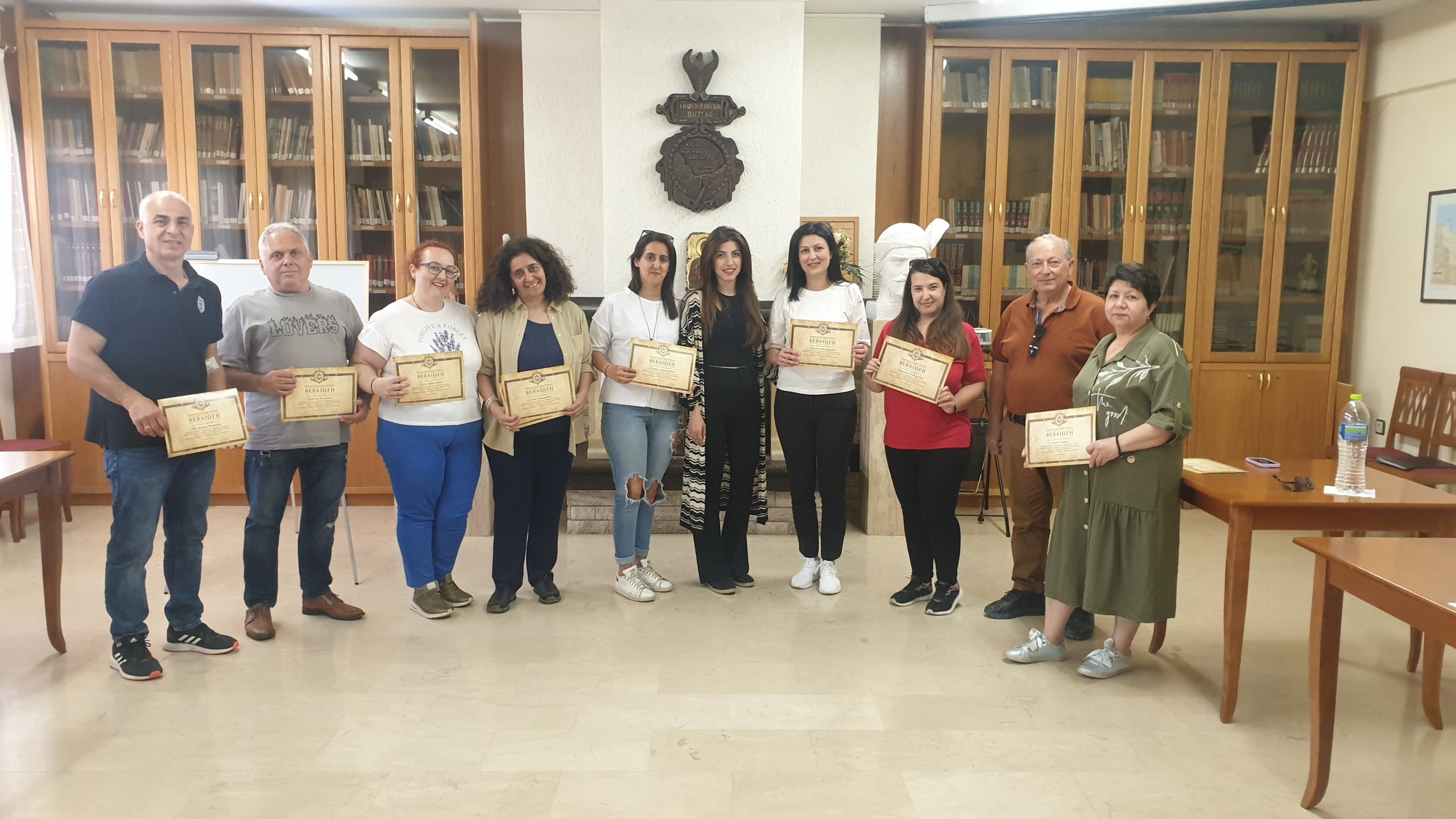 Οι συμμετέχοντες παρέλαβαν βεβαιώσεις από το Διοικητικό Συμβούλιο, και θα παραλάβουν και αυτοί που δεν μπόρεσαν σήμερα να παραβρεθούν, για την παρακολούθηση των μαθημάτων τα οποία έγιναν από το μέλος του συλλόγου, την Φιλόλογο, εκπαιδεύτρια ποντιακής διαλέκτου και μέλος του Πανελληνίου Συνδέσμου Ποντίων Εκπαιδευτικών κα. Χριστίνα Μετενίδου.